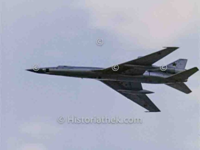 Die Tupolew Tu-22KD Blinder, ein sowjetischer Überschallbomber, im Tiefflug – erkennbar an ihrem schlanken Rumpf und den seitlich angeordneten Triebwerken. #Photography HT-Foto00100583-62 from 1962