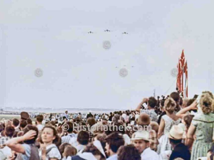 Publikum am Flughafen Tushino in Moskau, das 1962 die spektakulären Vorführungen zum Tag der sowjetischen Luftfahrt beobachtet.
